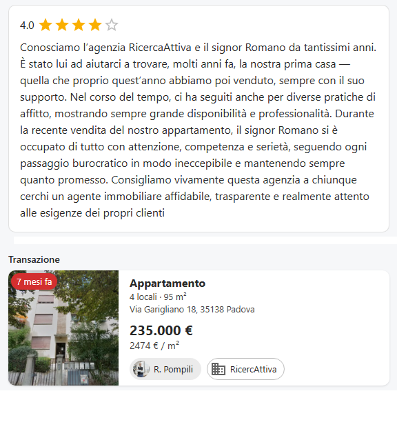recensioni romano pompili agente immobiliare Padova